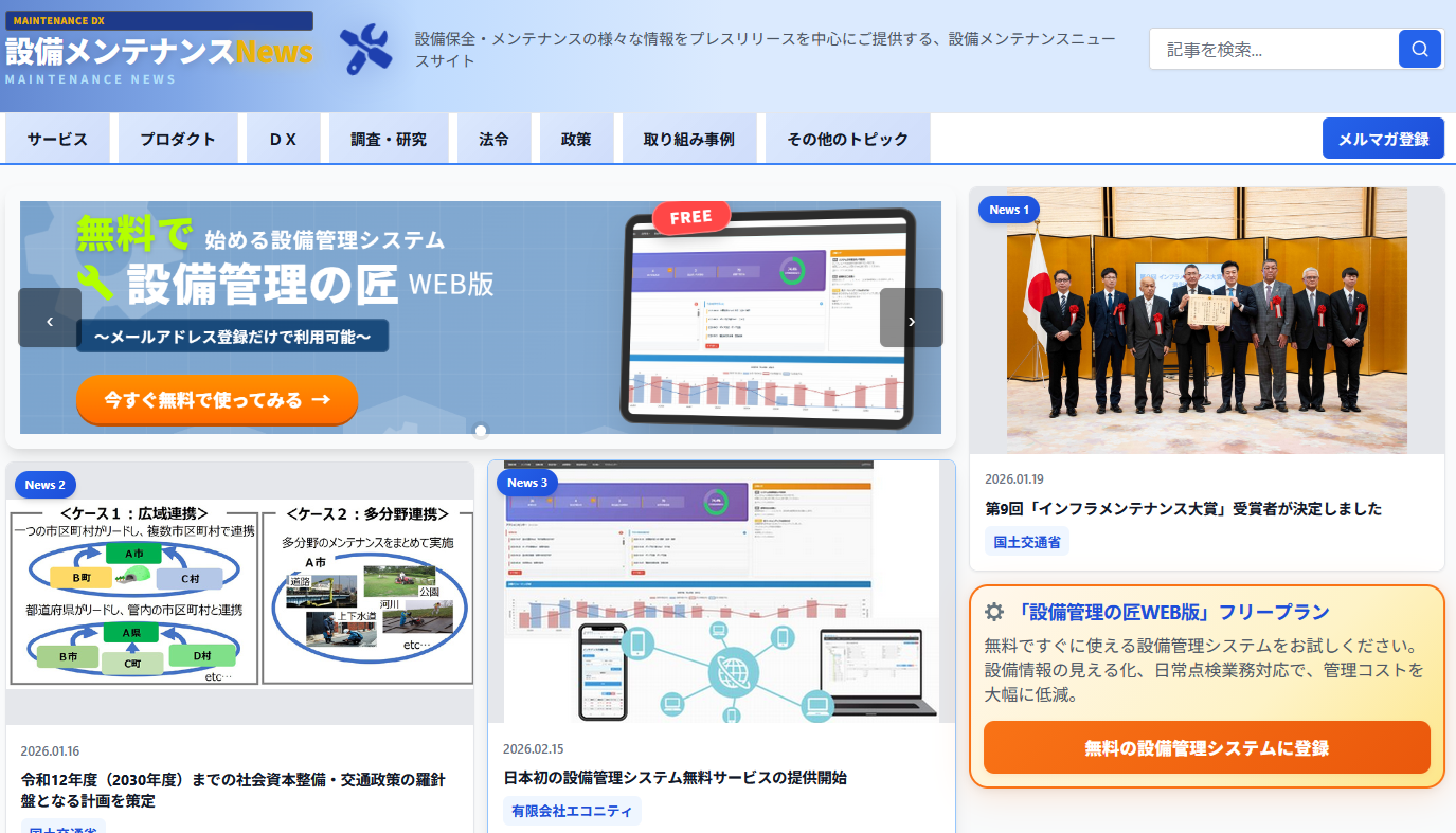 「設備メンテナンスNews」のサービスをリリース
