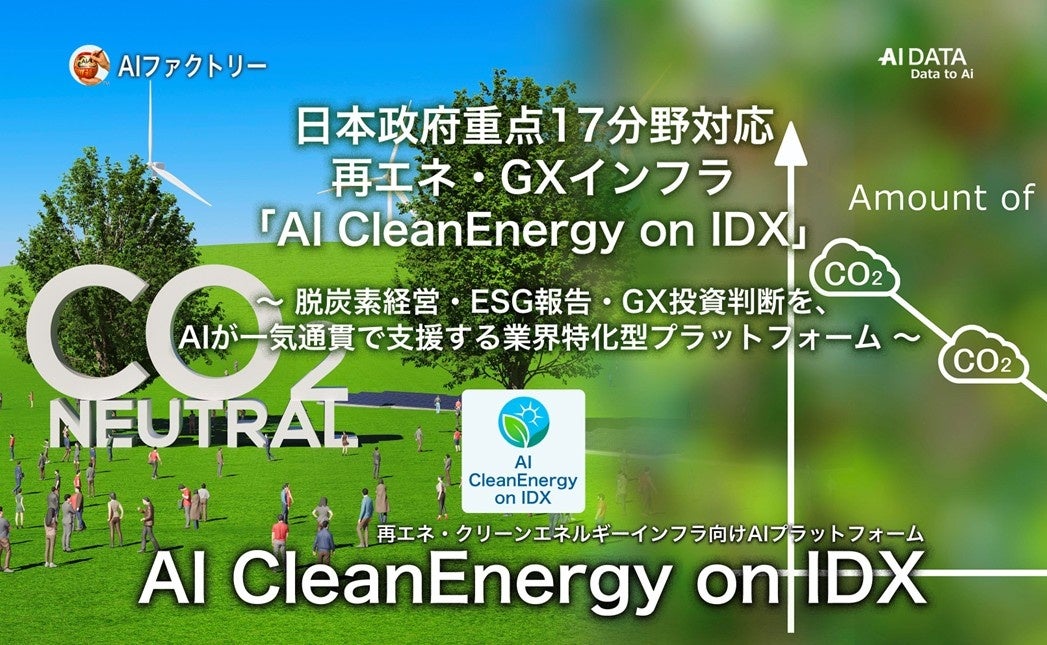 日本政府重点17分野対応、再エネ・GXインフラ向け「AI CleanEnergy on IDX」