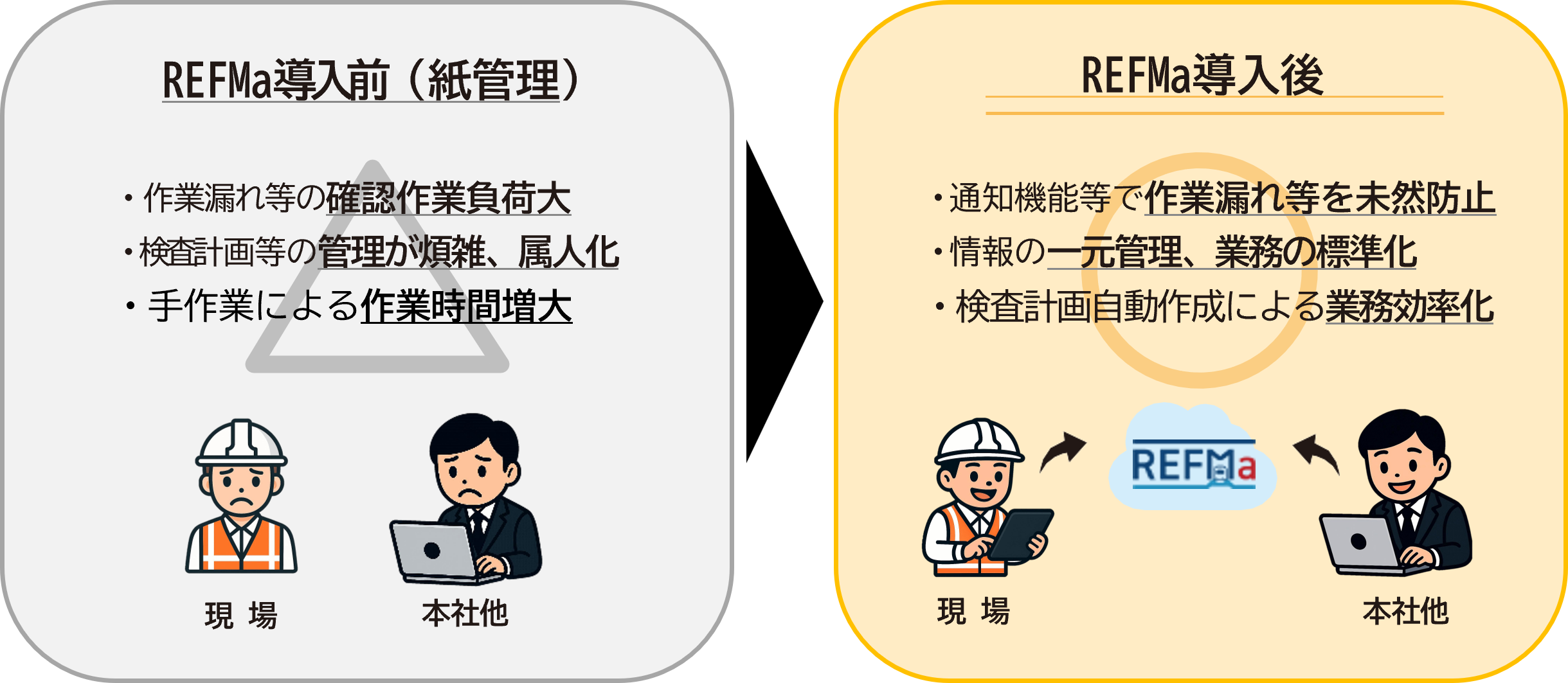 ■鉄道電気設備保守管理システム REFMa導入前後のイメージ